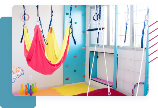 salas. Cada ambiente, como nossa sala de terapia ocupacional,